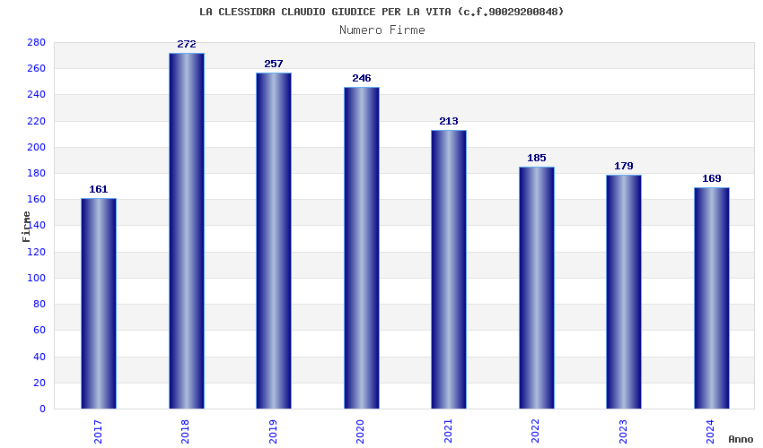 | Anno | Firme | Importi | Media | Naz. | Reg. | Prov. | Comu. |