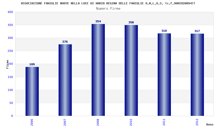 | Anno | Firme | Importi | Media | Naz. | Reg. | Prov. | Comu. |