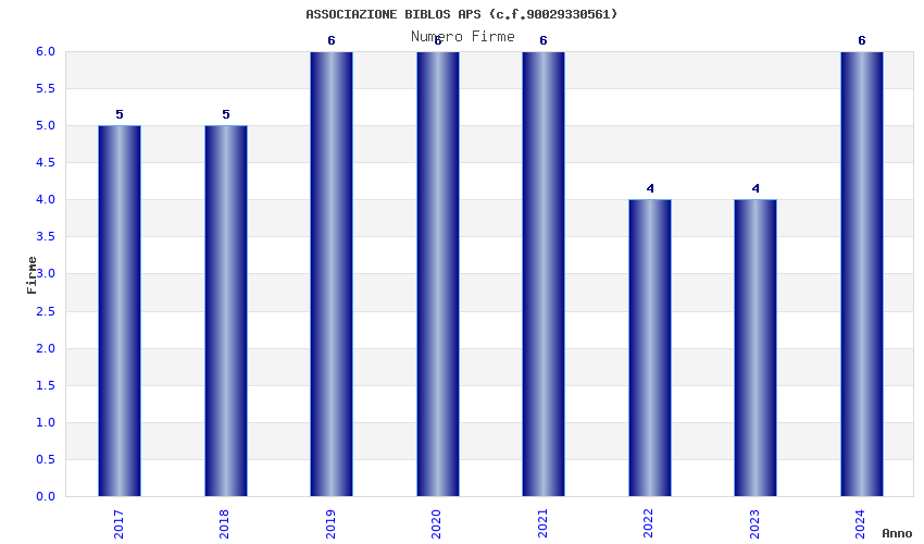 | Anno | Firme | Importi | Media | Naz. | Reg. | Prov. | Comu. |