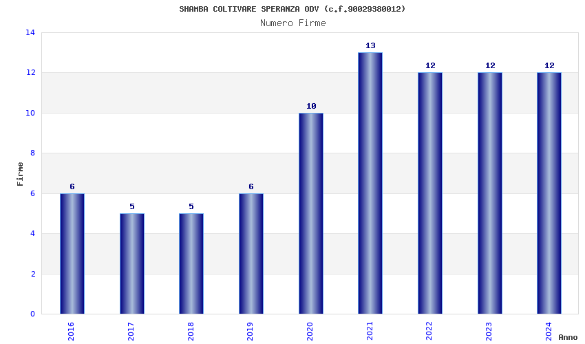 | Anno | Firme | Importi | Media | Naz. | Reg. | Prov. | Comu. |