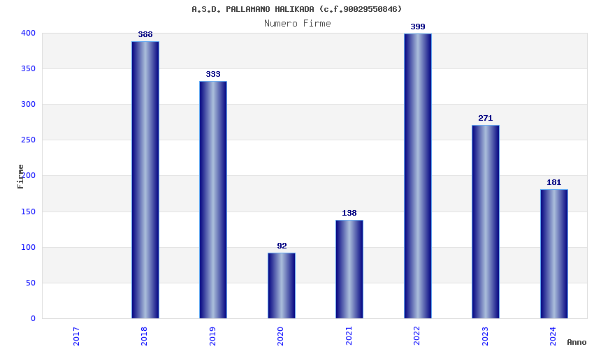 | Anno | Firme | Importi | Media | Naz. | Reg. | Prov. | Comu. |
