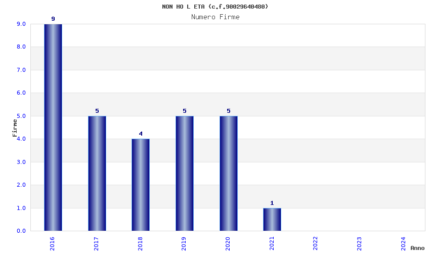 | Anno | Firme | Importi | Media | Naz. | Reg. | Prov. | Comu. |
