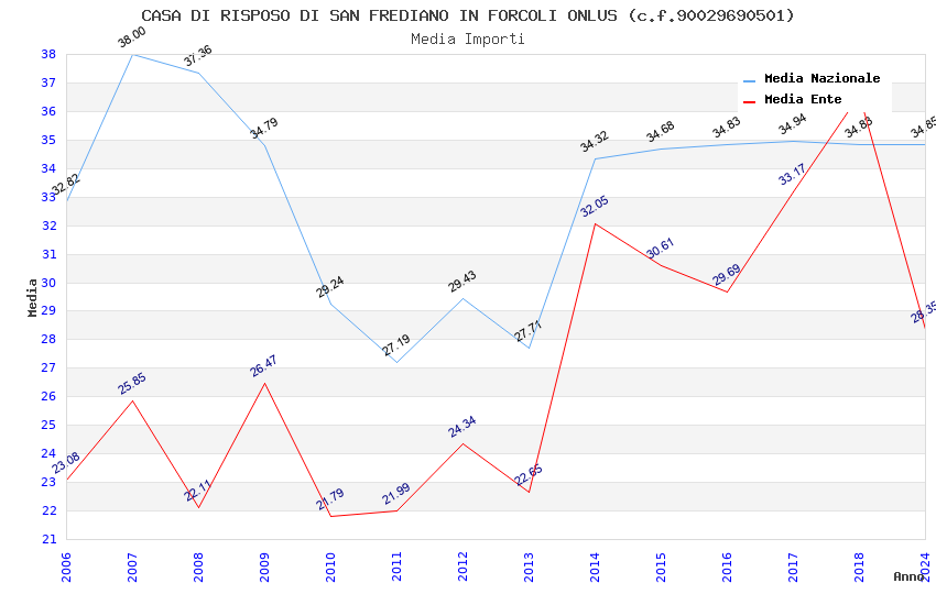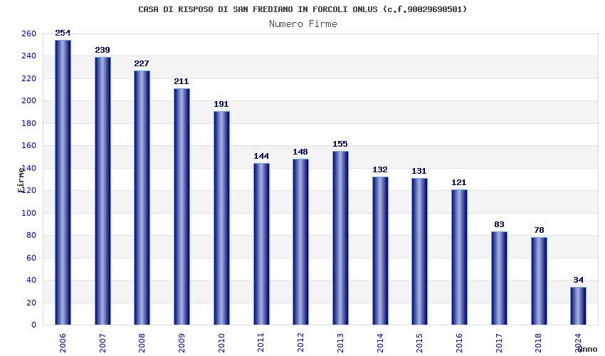 | Anno | Firme | Importi | Media | Naz. | Reg. | Prov. | Comu. |