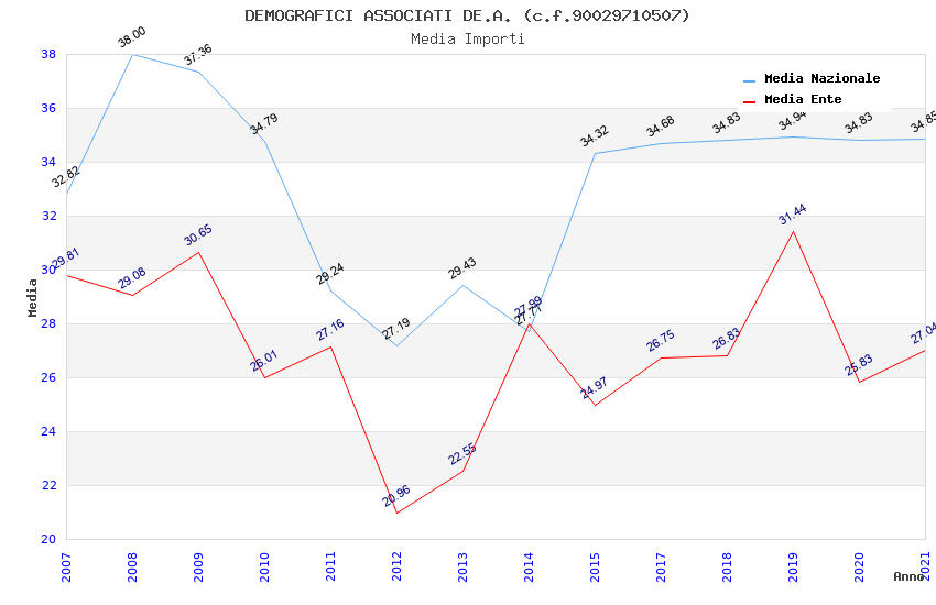| Anno | Firme | Importi | Media | Naz. | Reg. | Prov. | Comu. |
