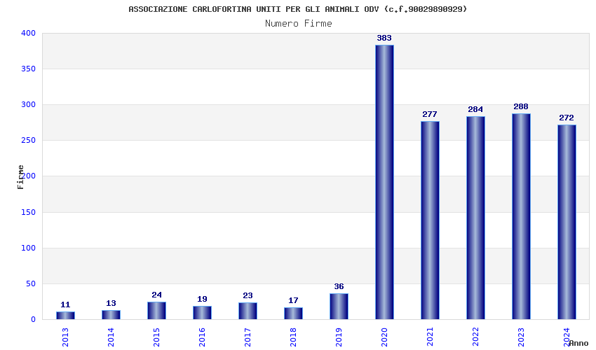 | Anno | Firme | Importi | Media | Naz. | Reg. | Prov. | Comu. |