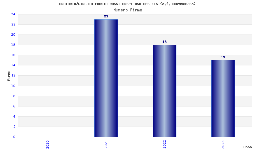 | Anno | Firme | Importi | Media | Naz. | Reg. | Prov. | Comu. |