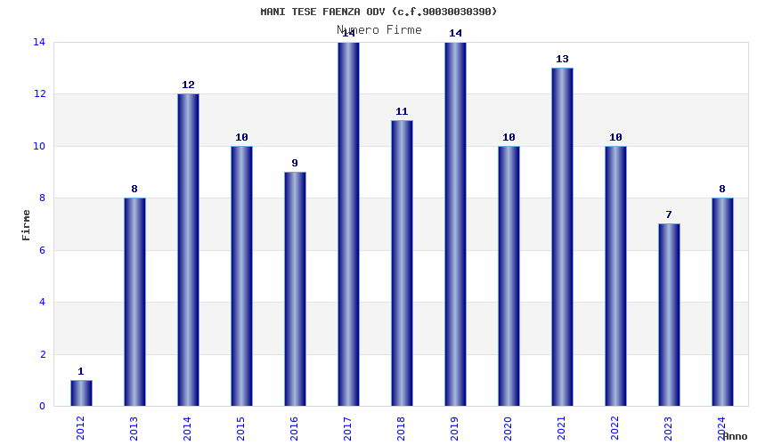 | Anno | Firme | Importi | Media | Naz. | Reg. | Prov. | Comu. |