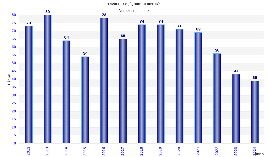 | Anno | Firme | Importi | Media | Naz. | Reg. | Prov. | Comu. |