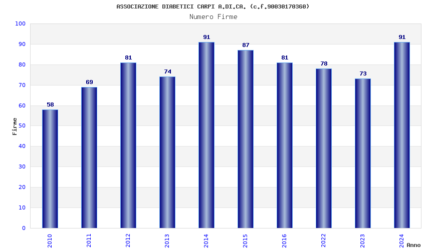 | Anno | Firme | Importi | Media | Naz. | Reg. | Prov. | Comu. |