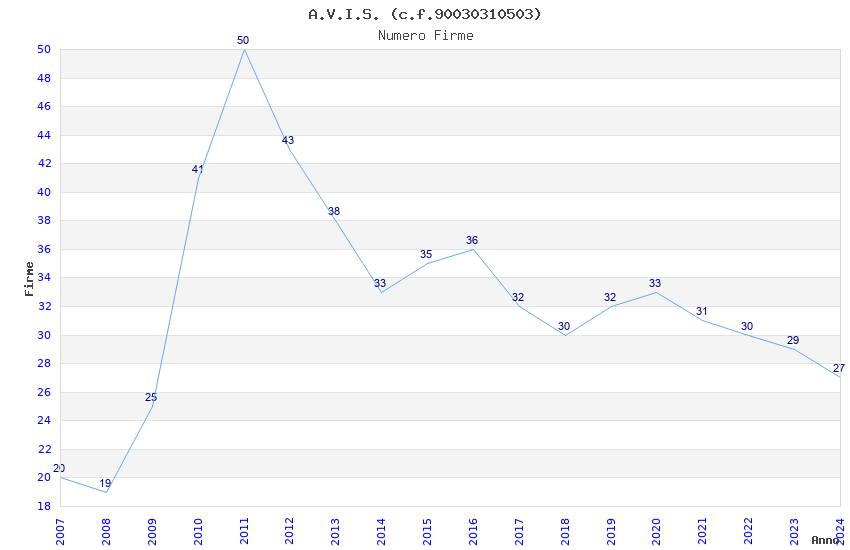 | 2011 | 50 | 1.151,65 | 23,03 | 19.376 | 1.337 | 151 | 2 |