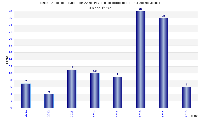 | Anno | Firme | Importi | Media | Naz. | Reg. | Prov. | Comu. |