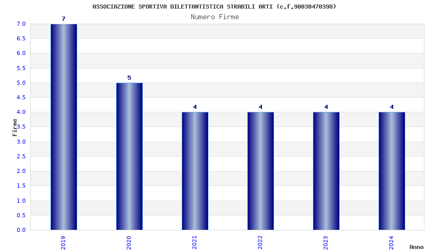 | Anno | Firme | Importi | Media | Naz. | Reg. | Prov. | Comu. |