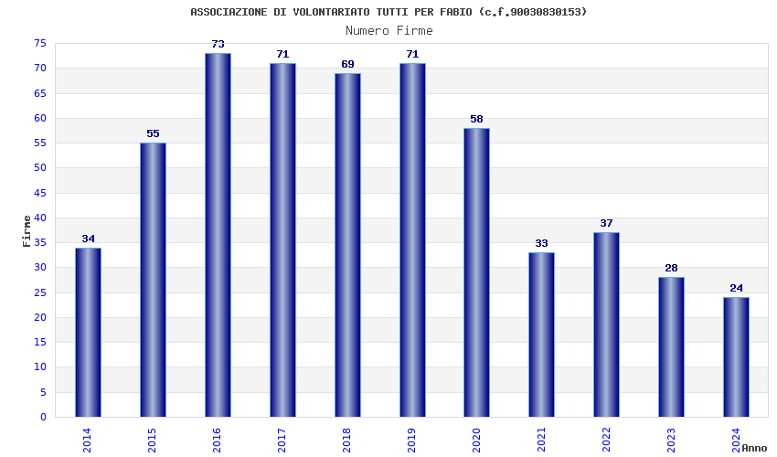 | Anno | Firme | Importi | Media | Naz. | Reg. | Prov. | Comu. |