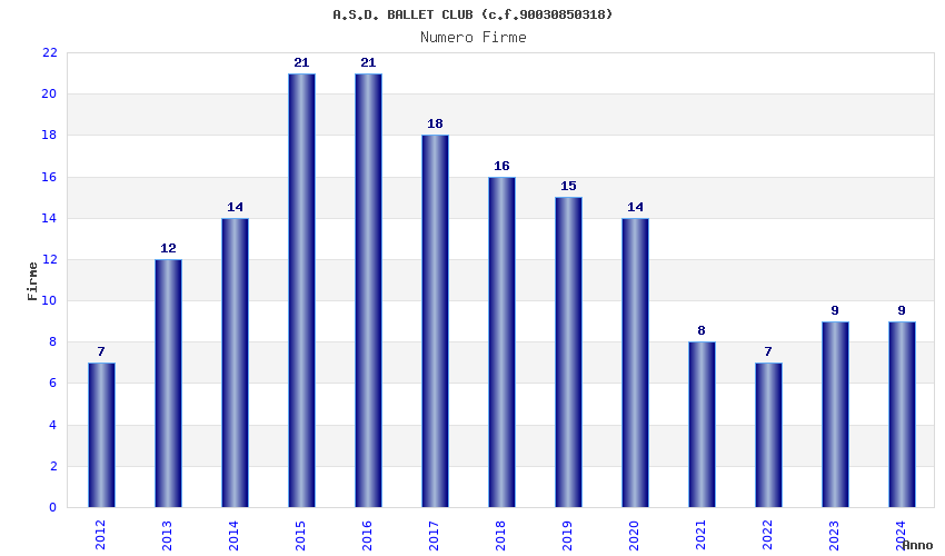| 2015 | 21 | 413,21 | 19,68 | 41.319 | 1.179 | 144 | 9 |