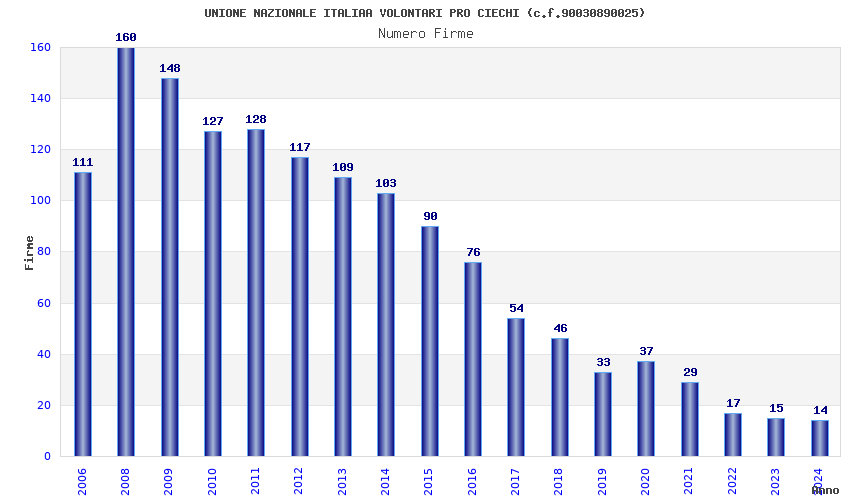 | Anno | Firme | Importi | Media | Naz. | Reg. | Prov. | Comu. |