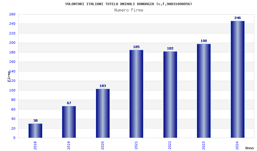| Anno | Firme | Importi | Media | Naz. | Reg. | Prov. | Comu. |