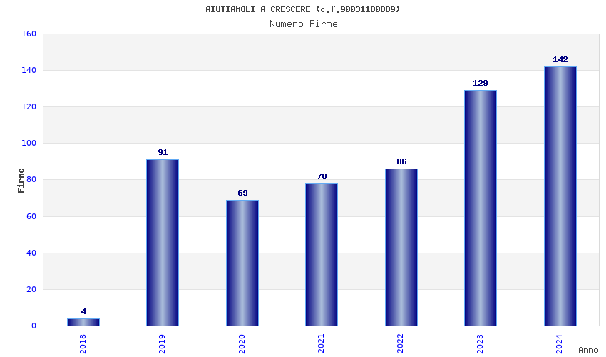 | Anno | Firme | Importi | Media | Naz. | Reg. | Prov. | Comu. |