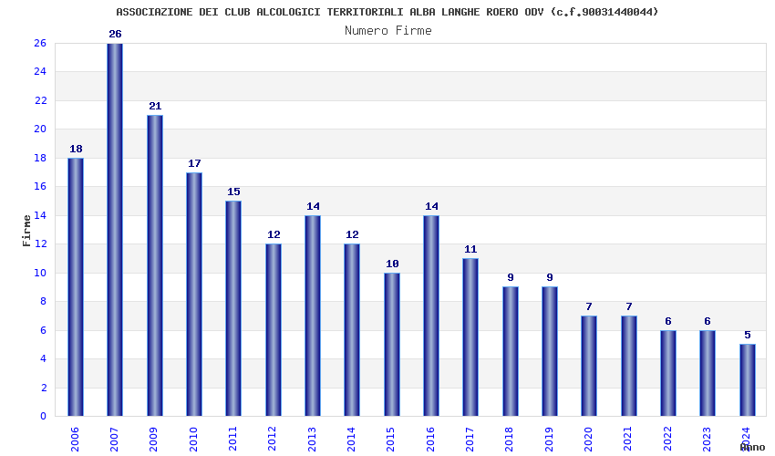| Anno | Firme | Importi | Media | Naz. | Reg. | Prov. | Comu. |