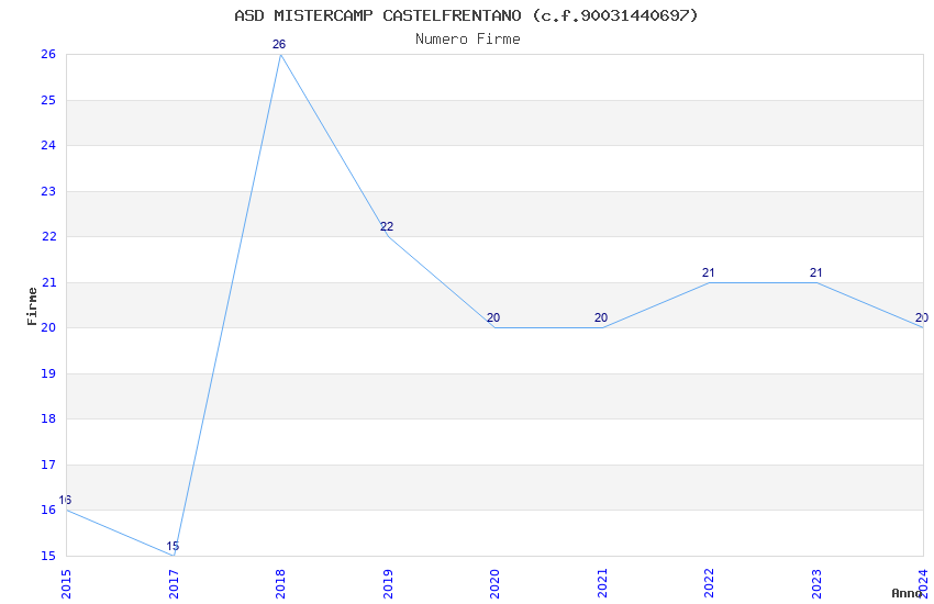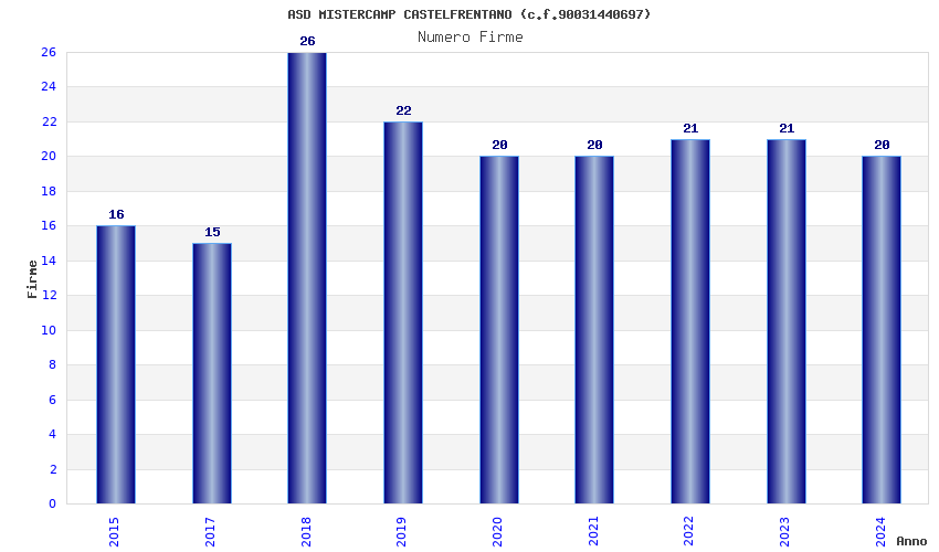 | 2018 | 26 | 576,15 | 22,16 | 43.222 | 826 | 214 | 2 |