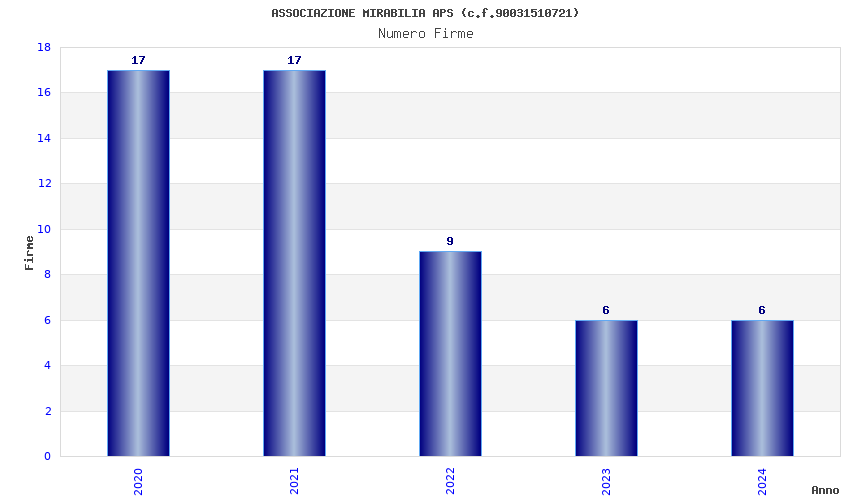 | Anno | Firme | Importi | Media | Naz. | Reg. | Prov. | Comu. |
