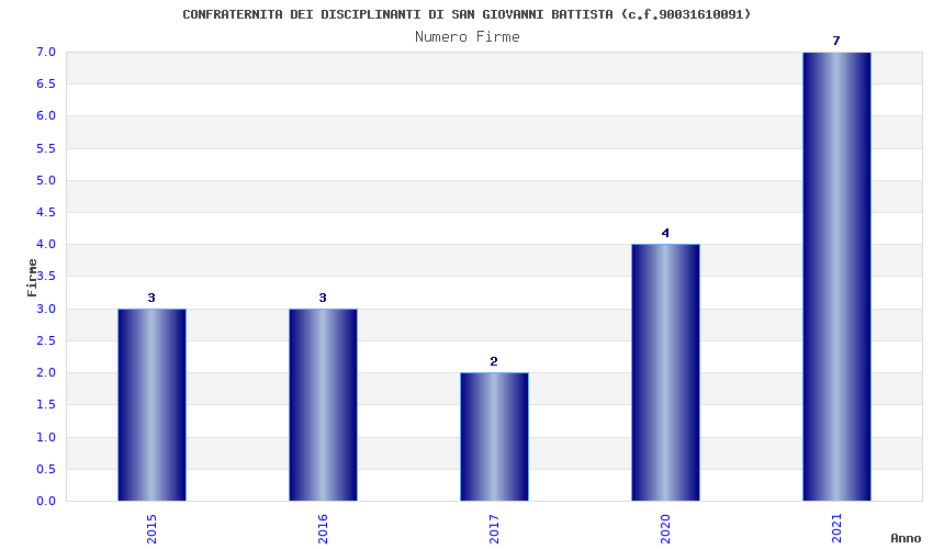 | Anno | Firme | Importi | Media | Naz. | Reg. | Prov. | Comu. |