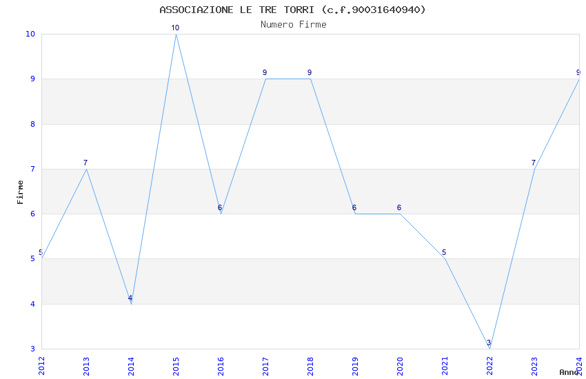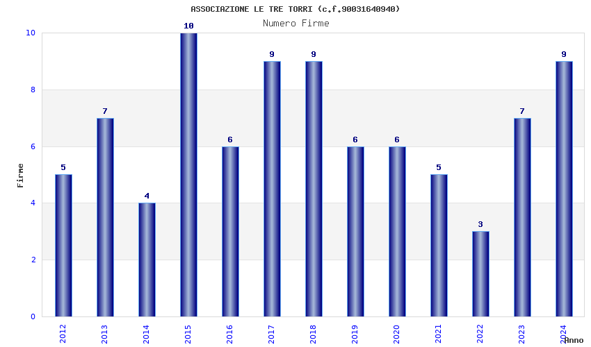 | Anno | Firme | Importi | Media | Naz. | Reg. | Prov. | Comu. |