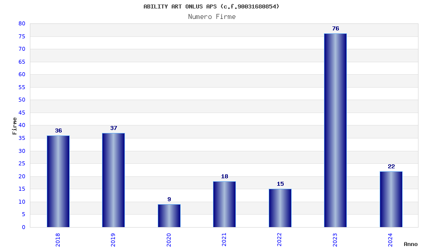 | Anno | Firme | Importi | Media | Naz. | Reg. | Prov. | Comu. |