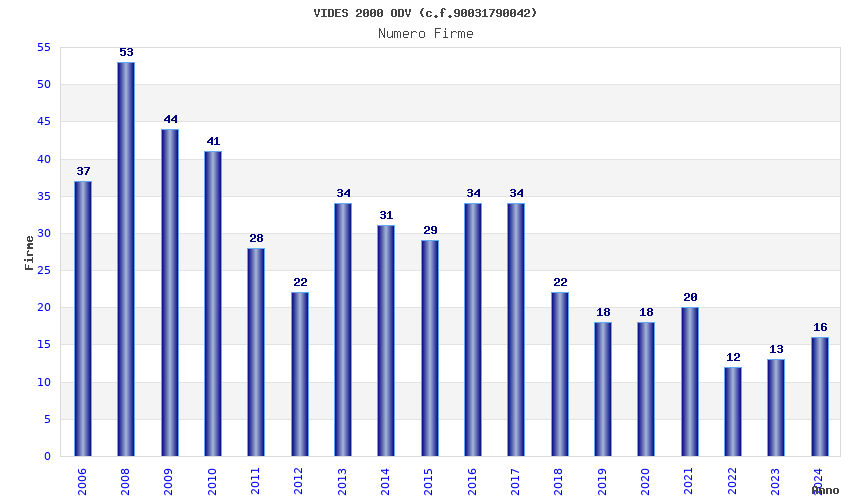| Anno | Firme | Importi | Media | Naz. | Reg. | Prov. | Comu. |
