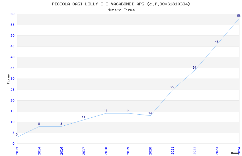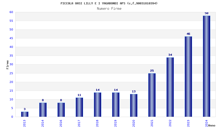 | Anno | Firme | Importi | Media | Naz. | Reg. | Prov. | Comu. |