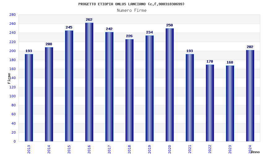 | 2016 | 262 | 9.159,27 | 34,96 | 5.679 | 83 | 23 | 4 |