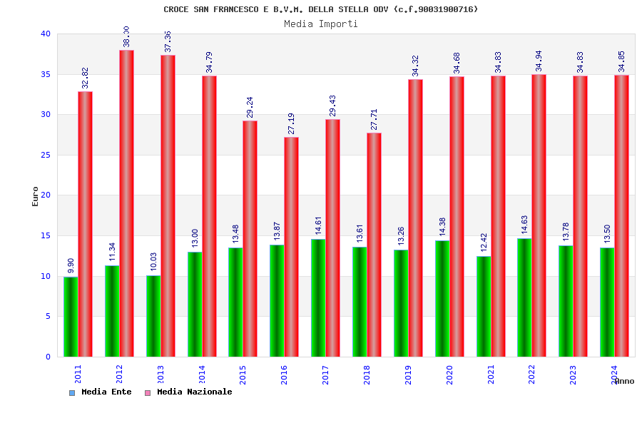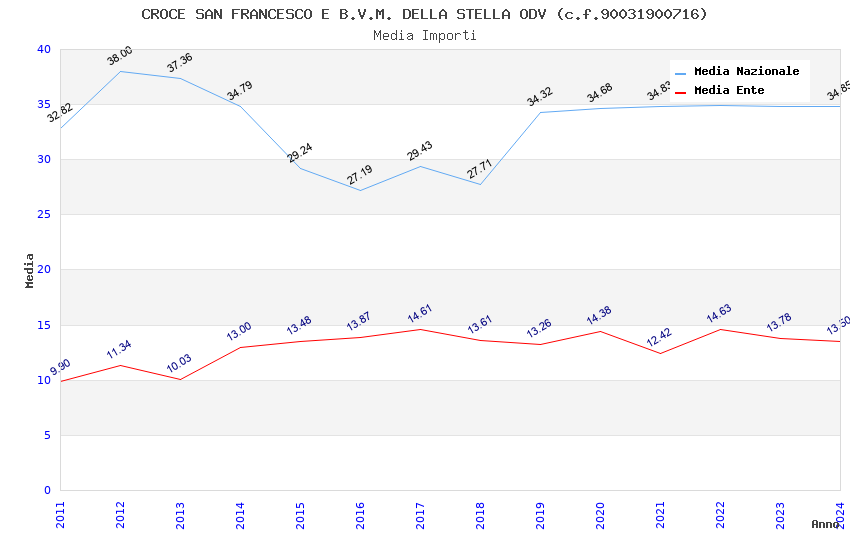 | Anno | Firme | Importi | Media | Naz. | Reg. | Prov. | Comu. |