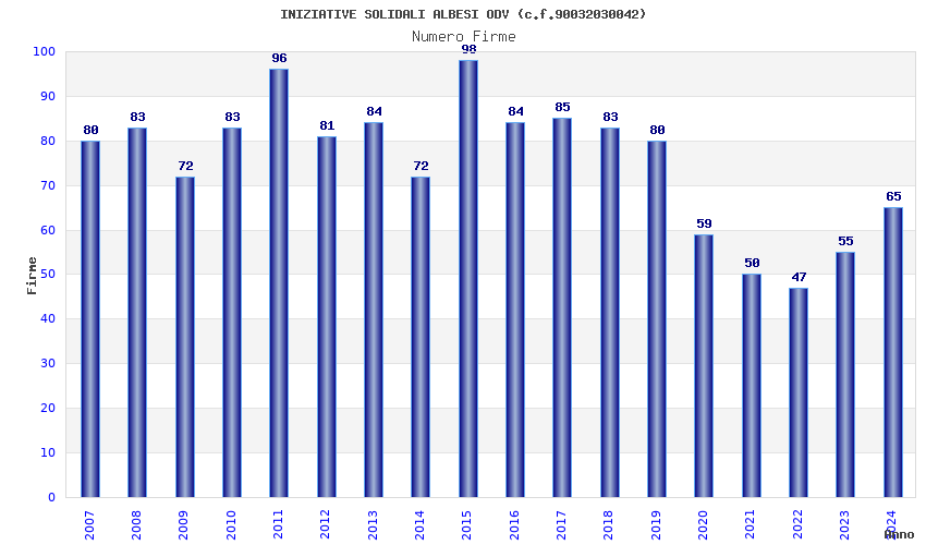 | 2007 | 80 | 3.915,64 | 48,95 | 8.822 | 703 | 108 | 12 |
