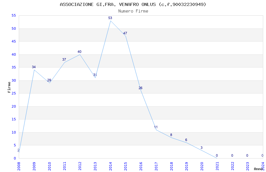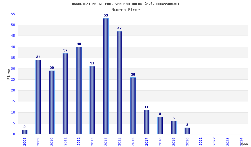 | Anno | Firme | Importi | Media | Naz. | Reg. | Prov. | Comu. |