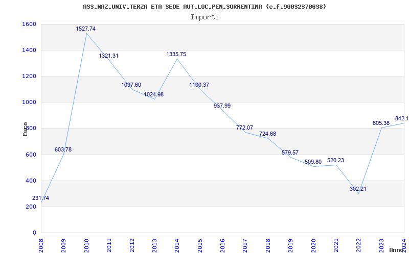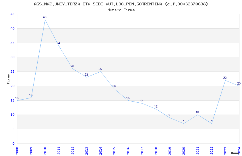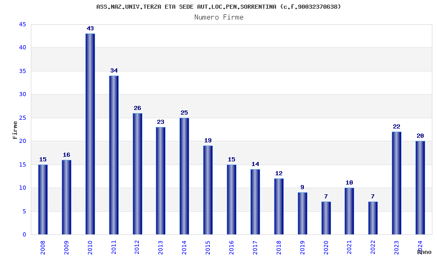 | Anno | Firme | Importi | Media | Naz. | Reg. | Prov. | Comu. |