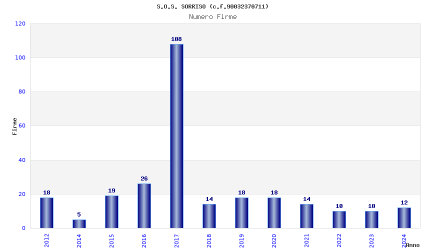 | Anno | Firme | Importi | Media | Naz. | Reg. | Prov. | Comu. |