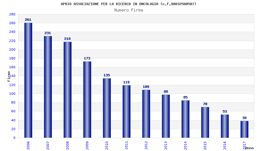 | Anno | Firme | Importi | Media | Naz. | Reg. | Prov. | Comu. |