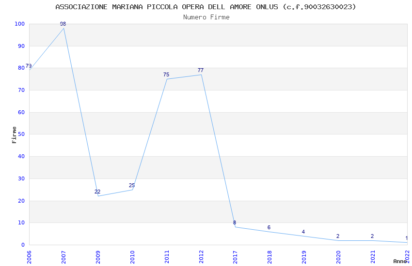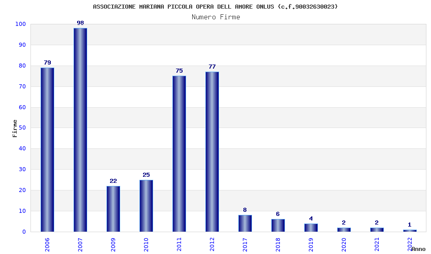 | Anno | Firme | Importi | Media | Naz. | Reg. | Prov. | Comu. |