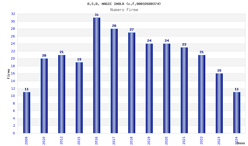 | 2016 | 31 | 1.004,00 | 32,39 | 32.842 | 2.930 | 685 | 56 |