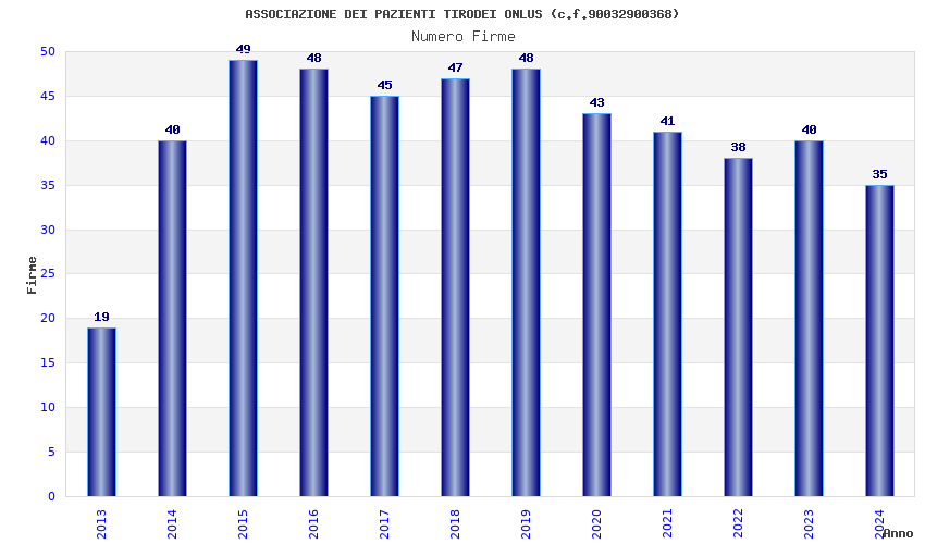| Anno | Firme | Importi | Media | Naz. | Reg. | Prov. | Comu. |