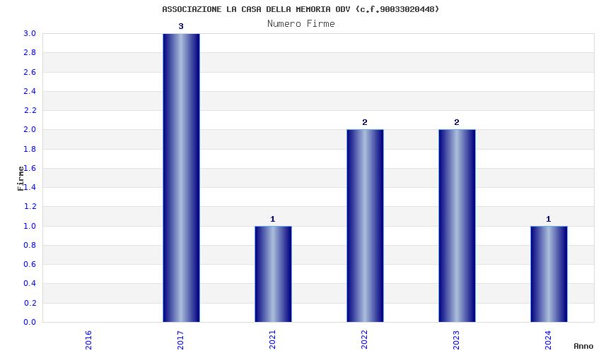 | Anno | Firme | Importi | Media | Naz. | Reg. | Prov. | Comu. |