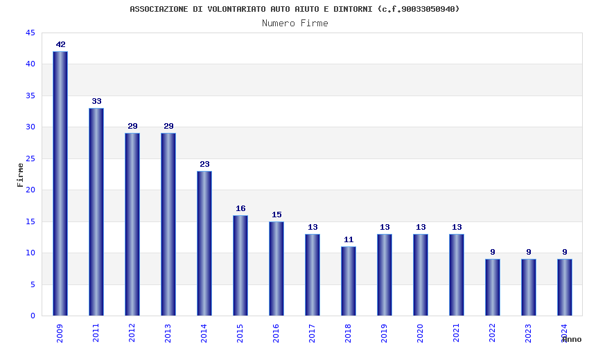 Anno Firme Importi Media Naz. Reg. Prov. Comu.