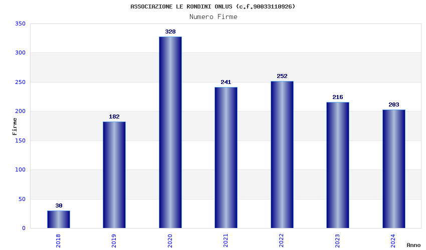 | Anno | Firme | Importi | Media | Naz. | Reg. | Prov. | Comu. |