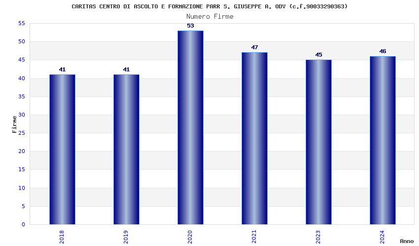 | Anno | Firme | Importi | Media | Naz. | Reg. | Prov. | Comu. |
