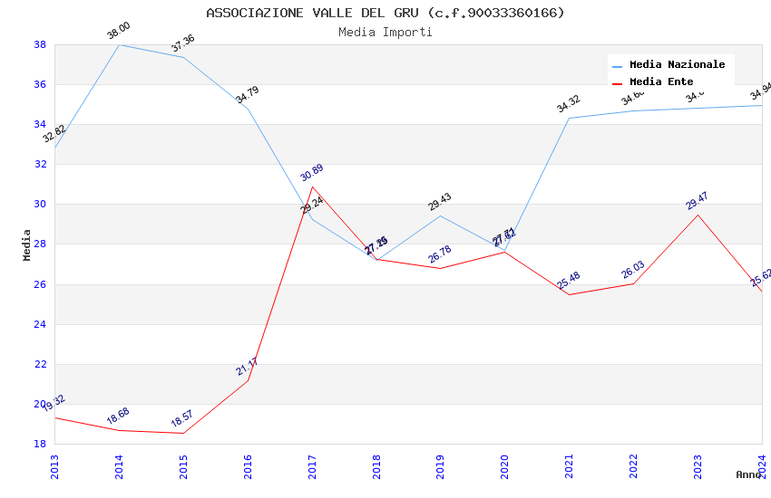| Anno | Firme | Importi | Media | Naz. | Reg. | Prov. | Comu. |
