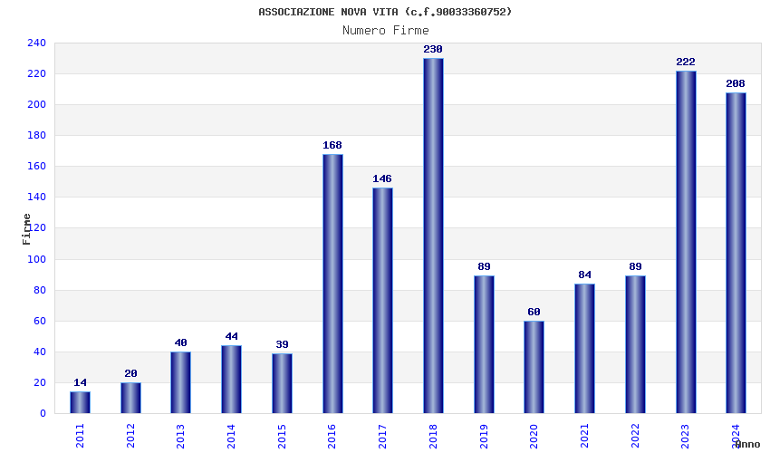 | Anno | Firme | Importi | Media | Naz. | Reg. | Prov. | Comu. |