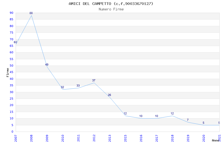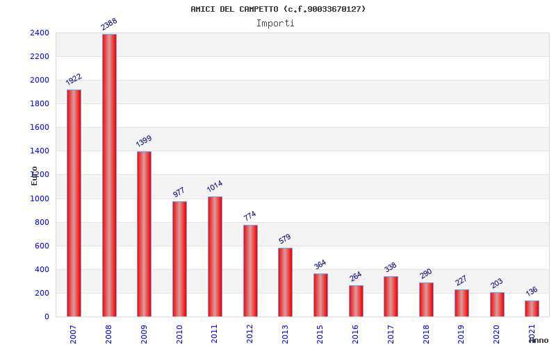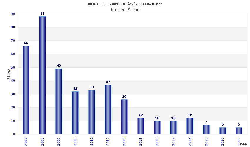 | Anno | Firme | Importi | Media | Naz. | Reg. | Prov. | Comu. |