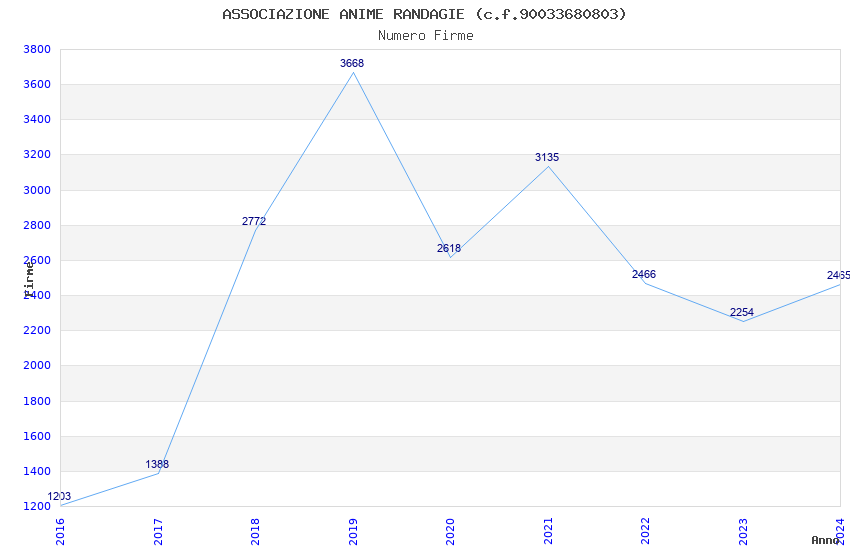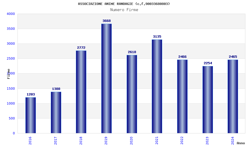 | Anno | Firme | Importi | Media | Naz. | Reg. | Prov. | Comu. |