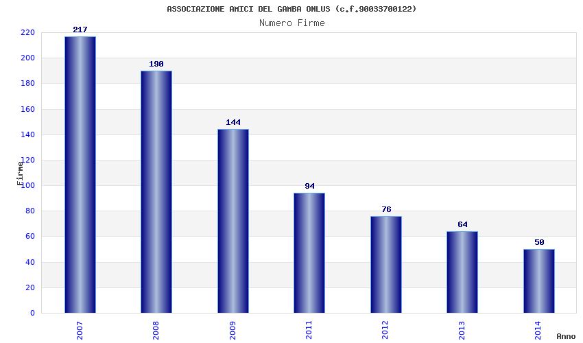 | Anno | Firme | Importi | Media | Naz. | Reg. | Prov. | Comu. |