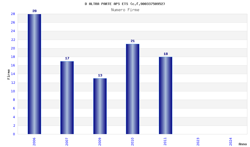 | Anno | Firme | Importi | Media | Naz. | Reg. | Prov. | Comu. |