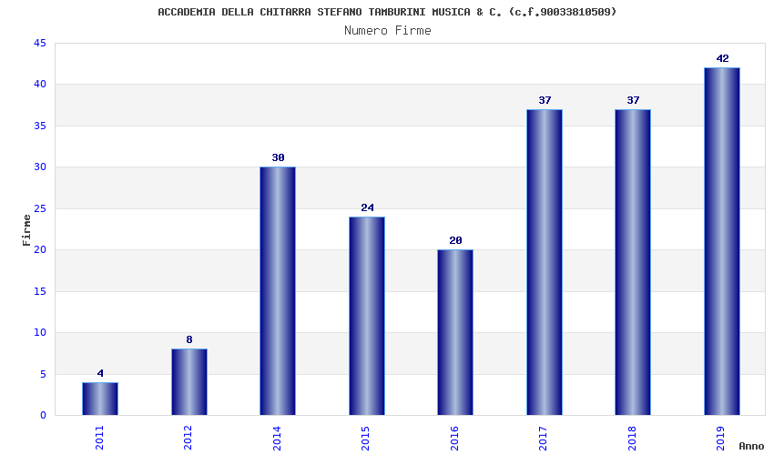 | Anno | Firme | Importi | Media | Naz. | Reg. | Prov. | Comu. |